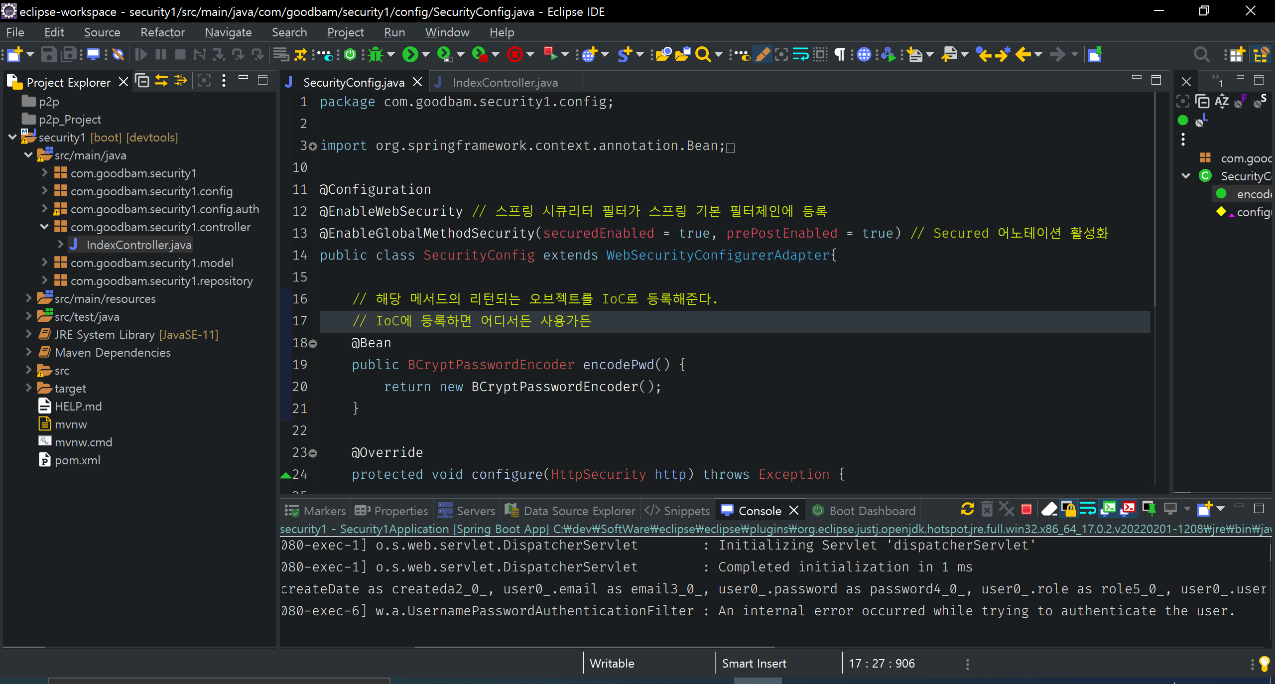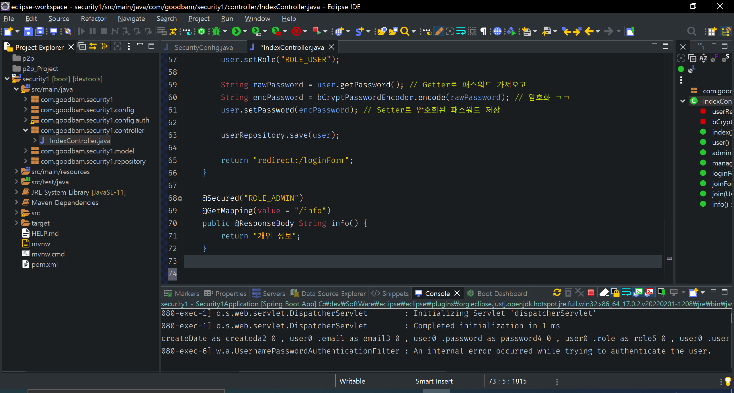 2.IndexController Class -> Info Method와 @Secured Annotation 추가 ㄱㄱ